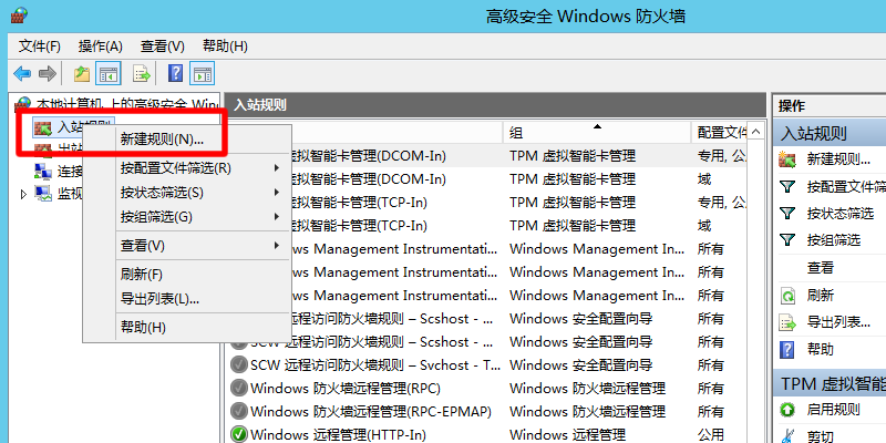 以下通过图文方式,介绍在Windows防火墙增加入站端口的操作步骤: