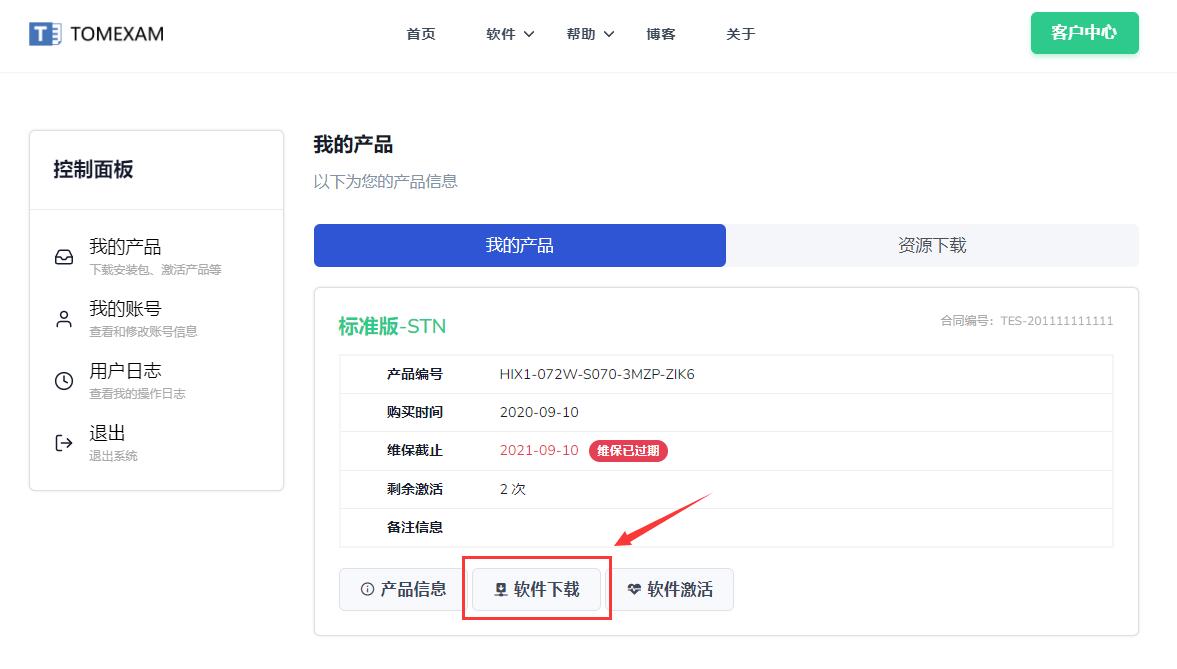 1、凭客户账号登录官网后,可在用户中心下载 安装包,如下图: