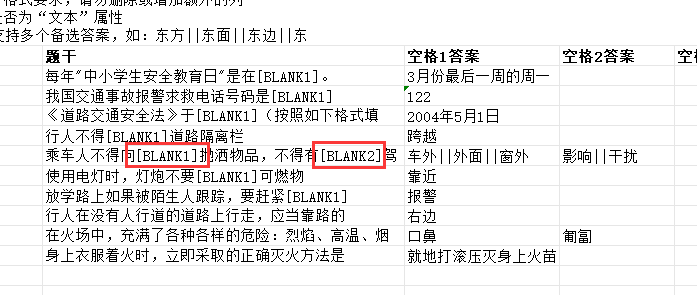 1、通过EXCEL导入填空题,需要在题干中设置占位符号([BLANK*]),请参考下图: